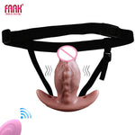 FAAK Wireless Control Vibrating Wearable Thick Anal Plug Strapon Realistic Silicone Dildos Vibrator BDSM Sex Toy For Women Men